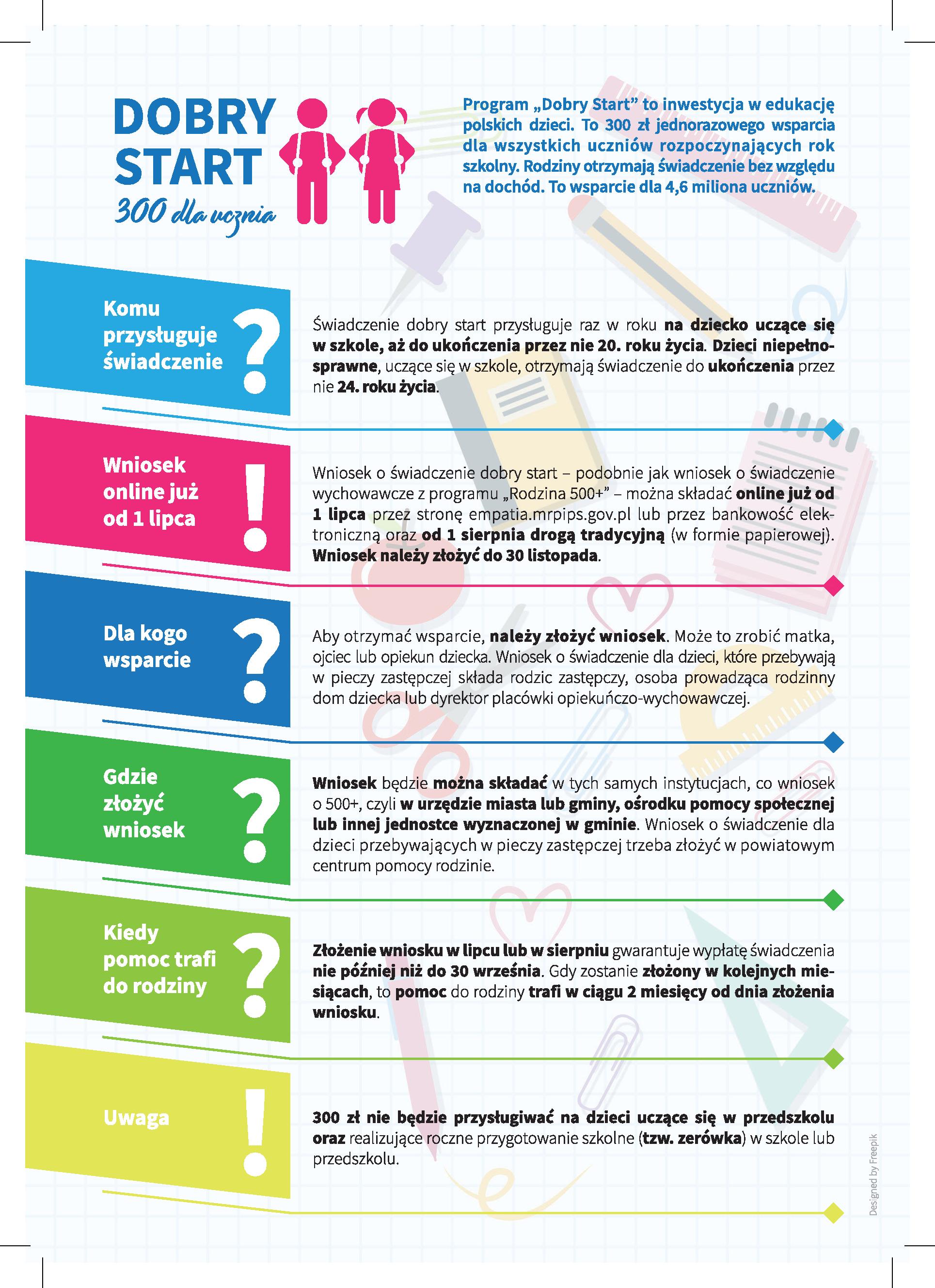 Materiały informacyjne ministerstwa rodziny, pracy i polityki społecznej: https://www.gov.pl/web/rodzina/dobry-start