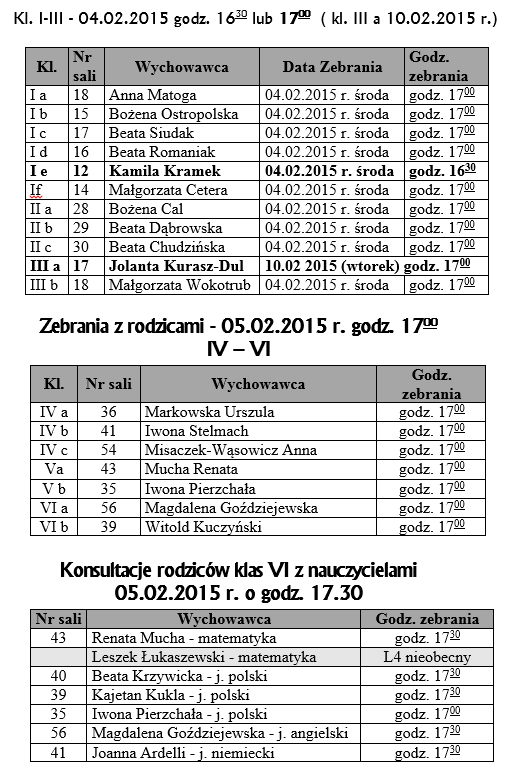 Klasy: 2 – 6 (zgłoszone do 26.11.2014 r.)