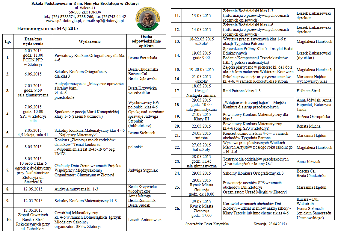 Dnia 6 maja 2015 roku odbył się szkolny konkurs klas III.