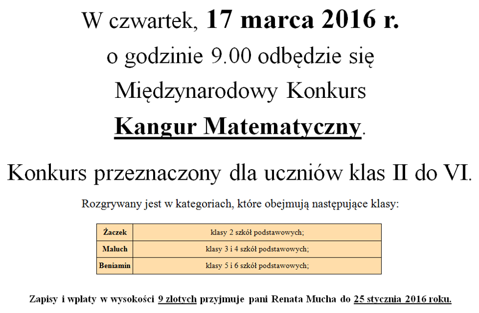 Termin składania – do 15 marca 2016 roku do nauczycielki plastyki - pani Magdaleny Hanebach.