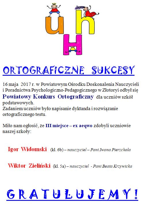 w kategorii klas 3. dziewcząt - I m. Natalia Gagatek, II m. Gebauer Annlie, III m. Kocyła Aleksandra