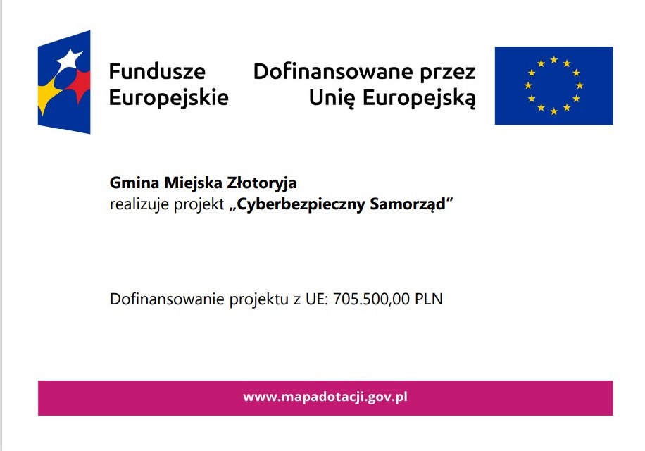 Projekt realizowany na podstawie umowy o powierzenie grantu o numerze FERC.02.02-CS.01-001/23/1030/ FERC.02.02-CS.01-001/23/2024 w ramach Funduszy Europejskich na Rozwój Cyfrowy 2021-2027 (FERC) Priorytet II: Zaawansowane usługi cyfrowe Działanie 2.2. – Wzmocnienie krajowego systemu cyberbezpieczeństwa. Konkurs grantowy w ramach Projektu grantowego „Cyberbezpieczny samorząd” o numerze FERC.02.02-CS.01-001/23